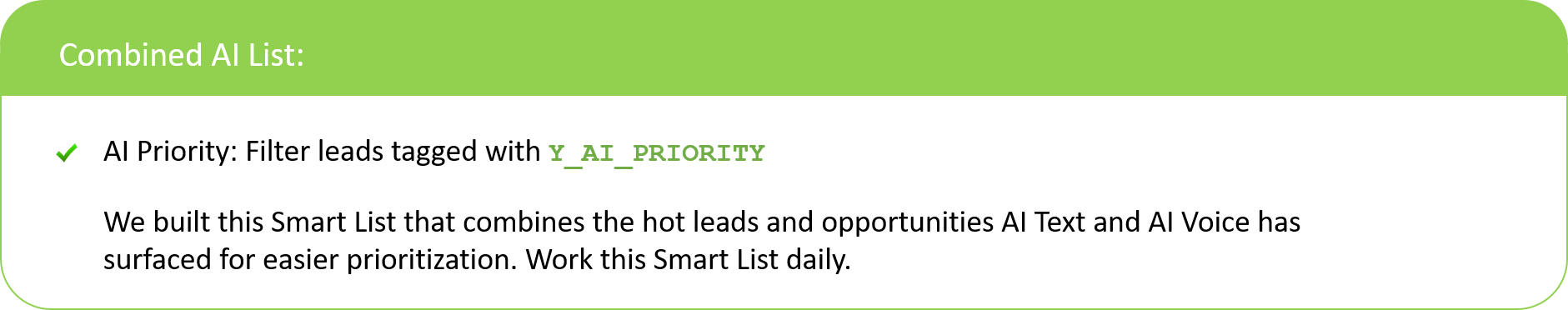 Leads who have engaged or expressed intent with AI Text. Reach out to them within the day!